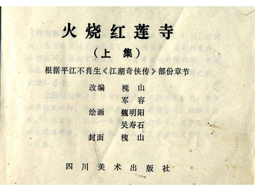 【摘要】武侠题材连环画:火烧红莲寺(上) 魏明阳,吴寿石绘