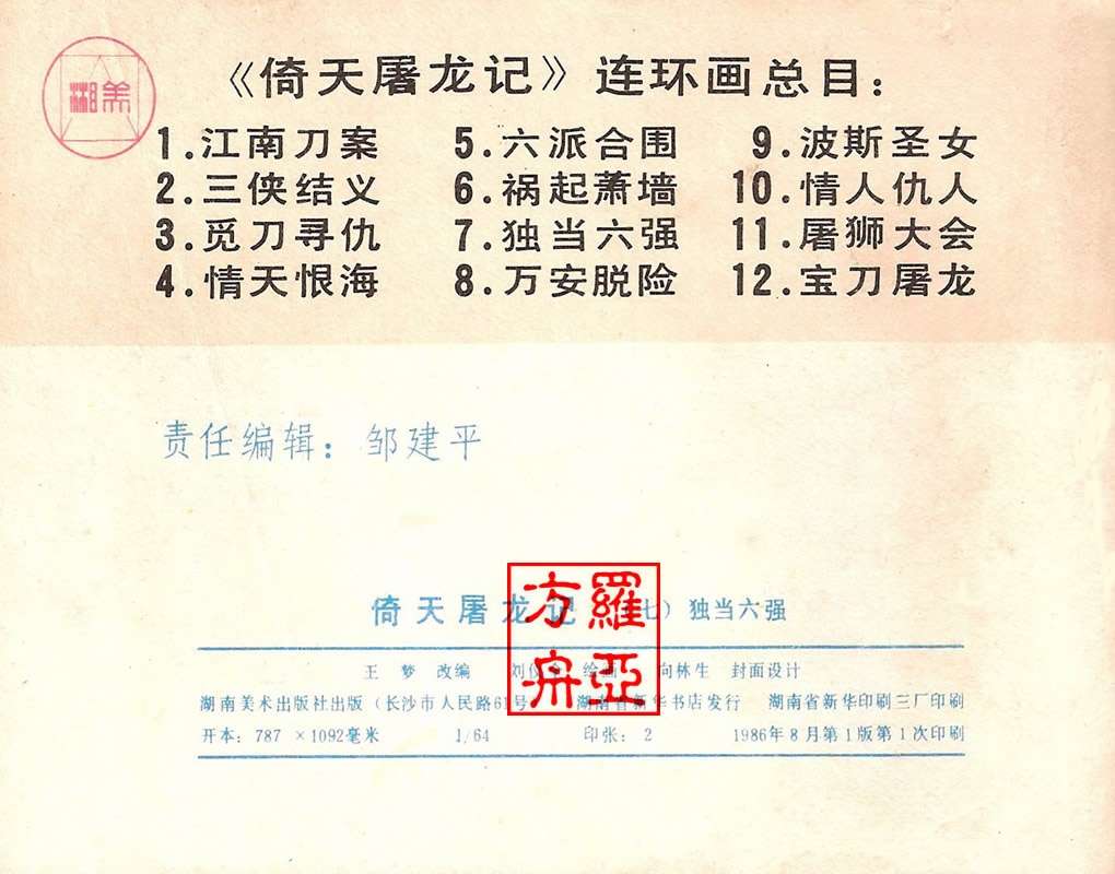 【摘要】武侠题材连环画:倚天屠龙记07独当六强 刘双全绘
