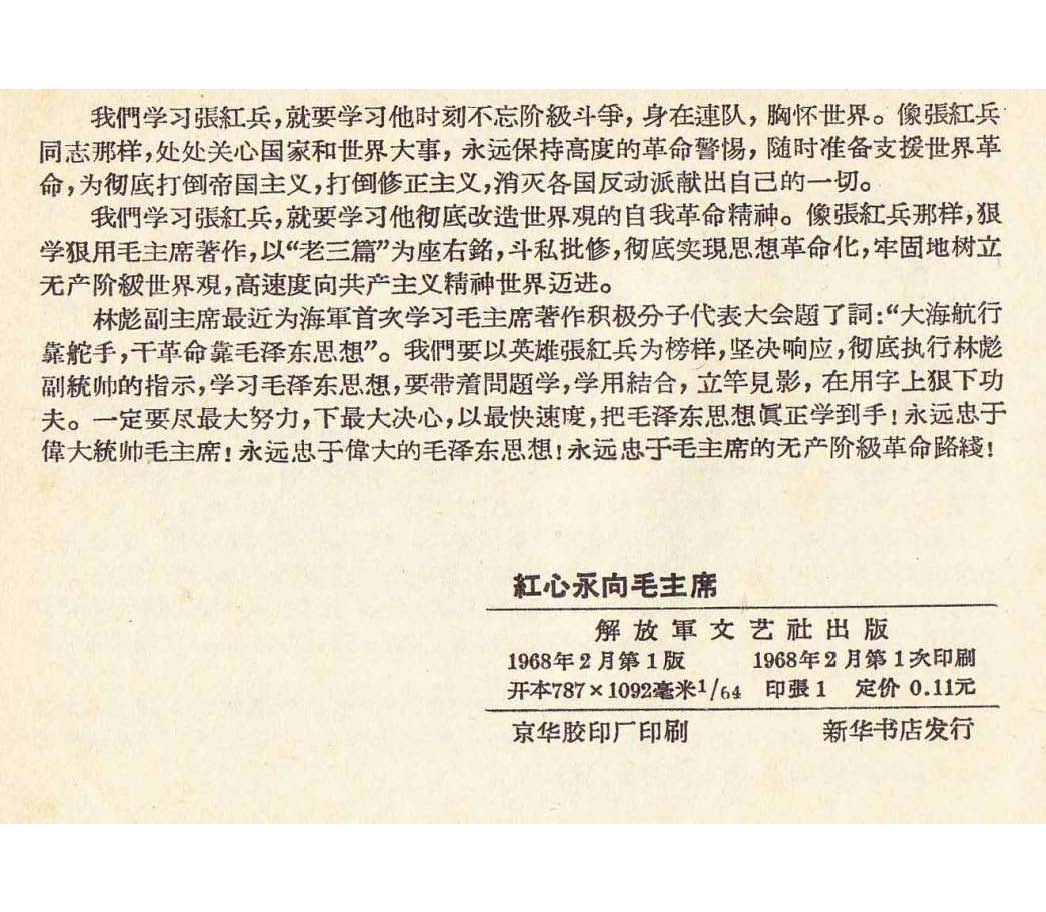 【摘要】红心永向毛主席