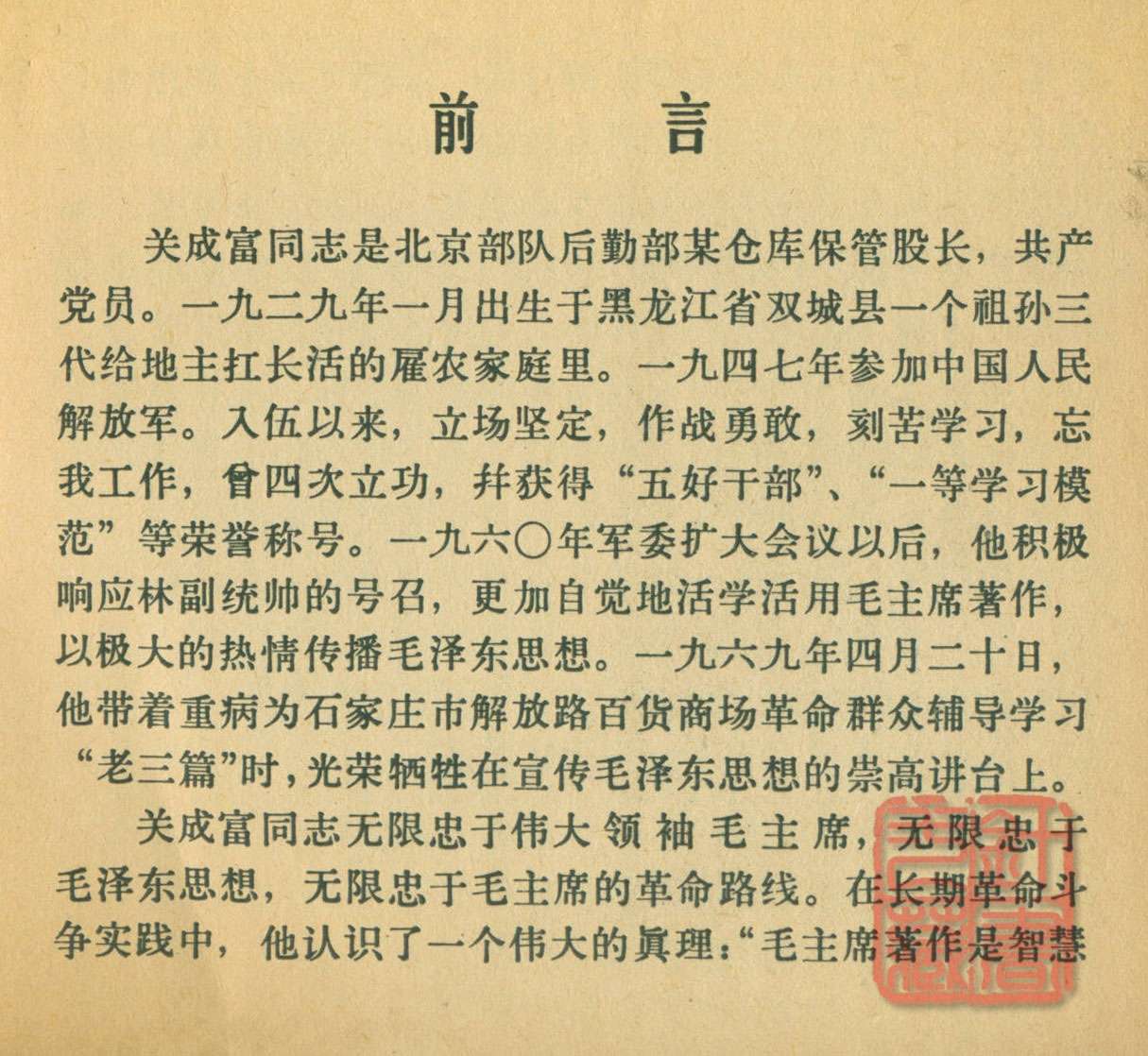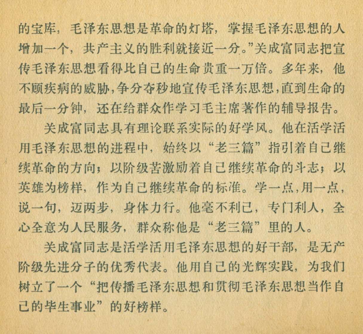 【摘要】毛泽东思想宣传员关成富
